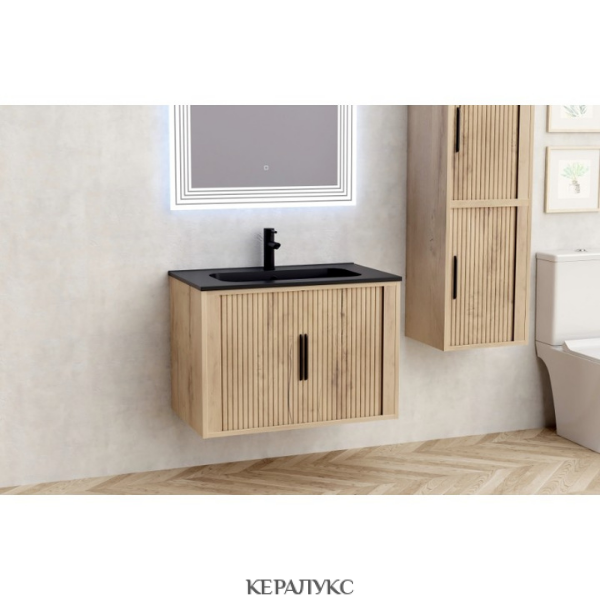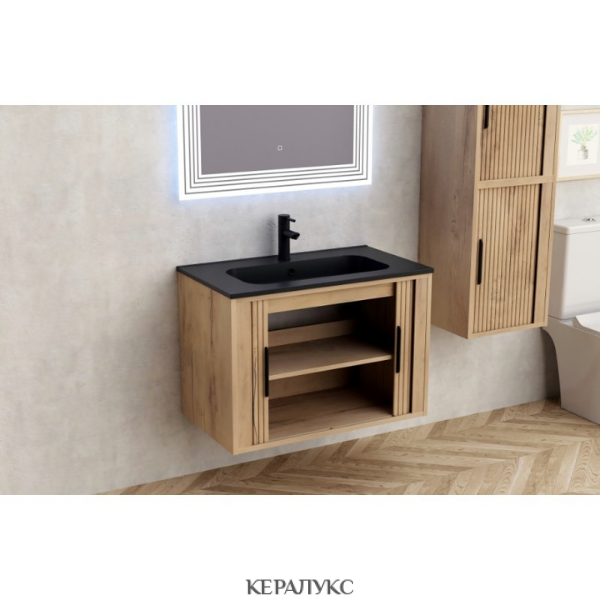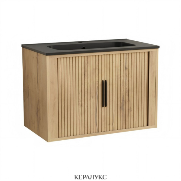 Мебел за баня ПВЦ ICP 8045 WOODEN с черен умивалник