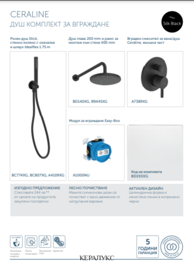 Душ комплект за вграждане CERALINE включва: