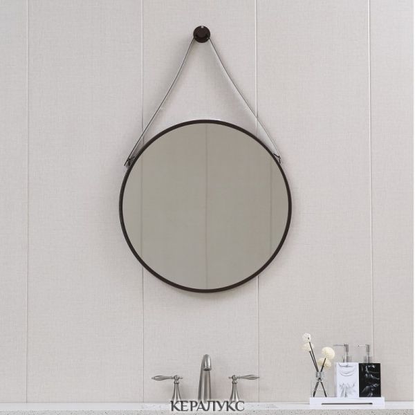 Кръгло огледало за баня с диаметър 60см, метална рамка в черен цвят, БЕЗ осветление.