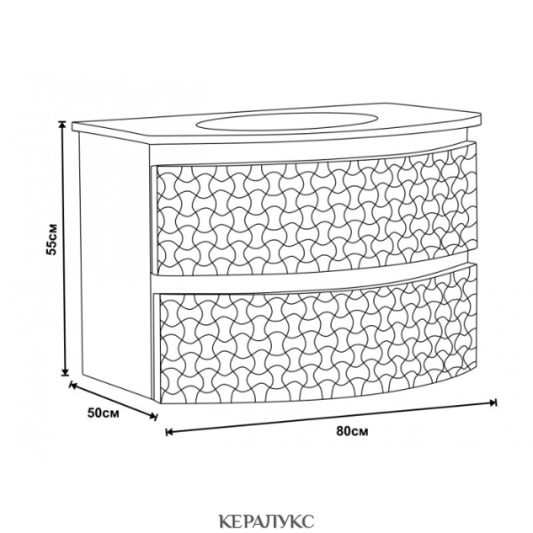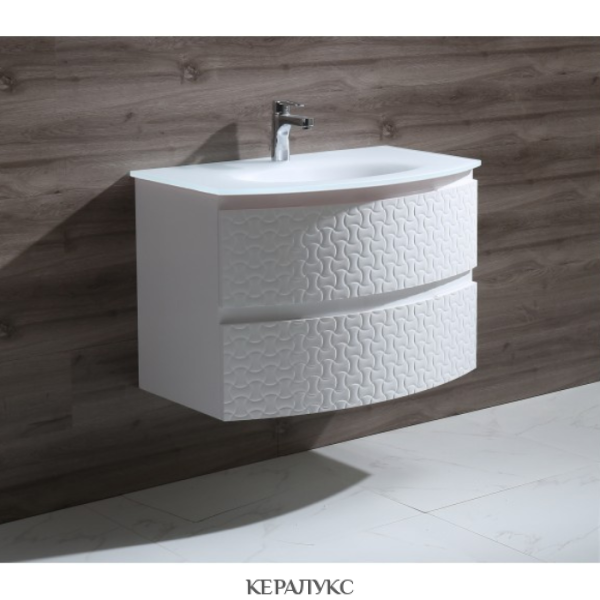 Удобен и красив, този ПВЦ шкаф за баня е с 2 чекмеджета с механизъм за плавно затваряне и стъклен умивалник. Бялата повърхност на чекмеджетата е с интересен релеф, който придава допълнителен чар и уникалност както на шкафа, така и на вашата баня.