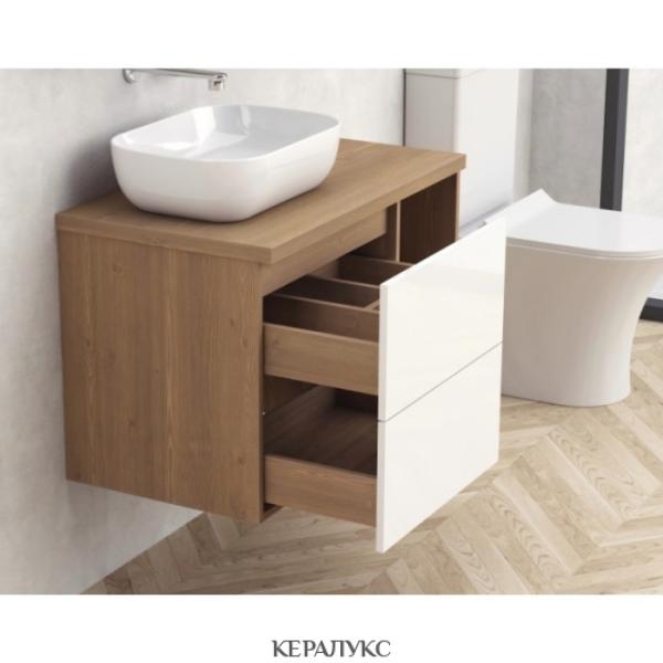 - Водо- и влагоустойчив шкаф за баня, изработен от ПВЦ с меламиново покритие.