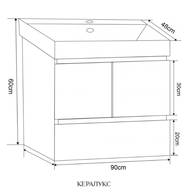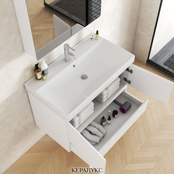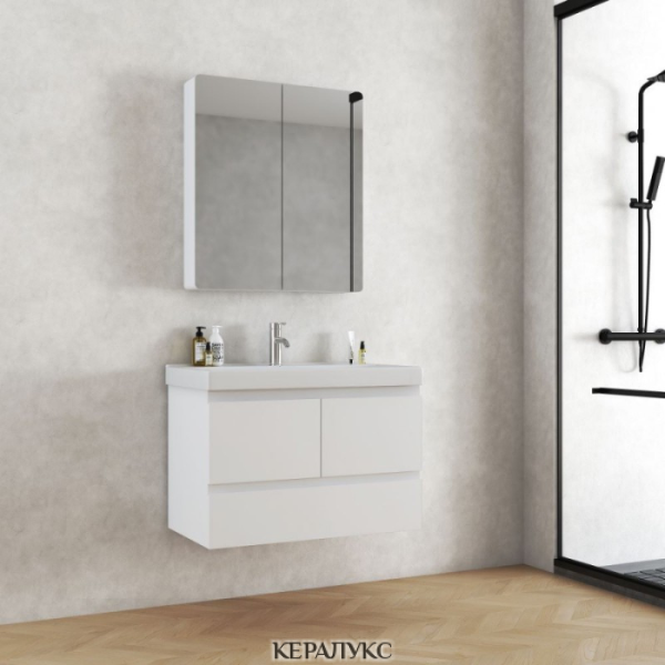 Конзолен шкаф за баня, напълно водо- и влагоустойчив с две вратички и чекмедже.